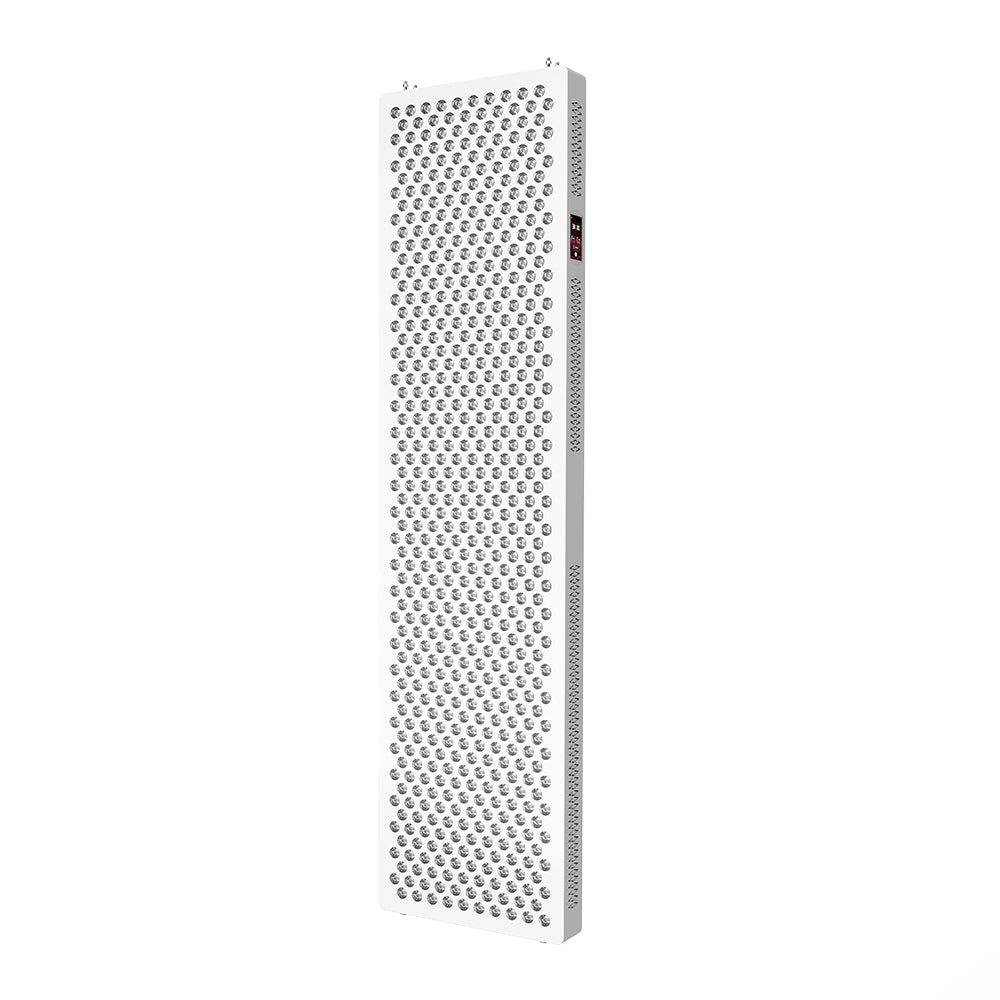 This device represents the highest power output for complete full-body immersion. It features advanced dual wavelengths with both Red Light for superior skin health and Near-Infrared Light for profound muscle and joint relief. The expansive panel size ensures head-to-toe coverage in a single session. It includes a robust, fully adjustable stand for perfect positioning and a remote for convenient control. Professional-grade protective glasses are included.