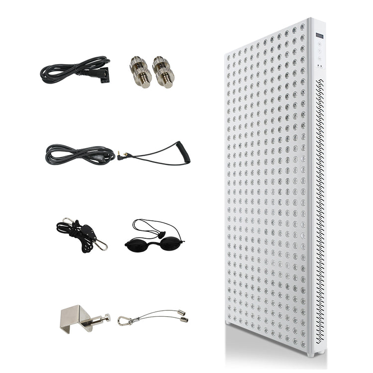 The LivLux Red LED Light Therapy Bed is a high-performance wellness device designed to deliver therapeutic red and near-infrared light to support skin rejuvenation, pain relief, and overall wellness. It features a 1:1 ratio of 660nm red and 850nm near-infrared wavelengths, delivered through 360 high-quality LEDs with a total power output of 1800W. This combination penetrates the skin to promote collagen production, reduce inflammation, and enhance circulation. The device offers time control and LED color control settings, allowing users to tailor treatments to their specific needs. Its 60° beam angle ensures effective coverage, and the device operates on AC85–265V voltage, making it suitable for various settings. The LivLux Red LED Light Therapy Bed is backed by a 5-year warranty, providing peace of mind for long-term use.