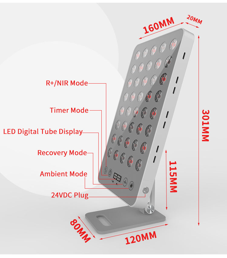 The 40W Adjustment 660nm 850nm Facial Care device is a versatile red light therapy tool designed to support skin rejuvenation and overall wellness. It features a combination of 660nm red and 850nm near-infrared wavelengths in a 1:1 ratio, delivered through 40 high-quality LED chips. This balanced spectrum penetrates the skin to promote collagen production, reduce inflammation, and enhance circulation. The device offers adjustable settings to tailor treatments to individual needs, making it suitable for various skin types and concerns. Its compact and lightweight design ensures portability, allowing for convenient use at home or on the go. The device is backed by a one-year warranty and online support, providing peace of mind for long-term use.