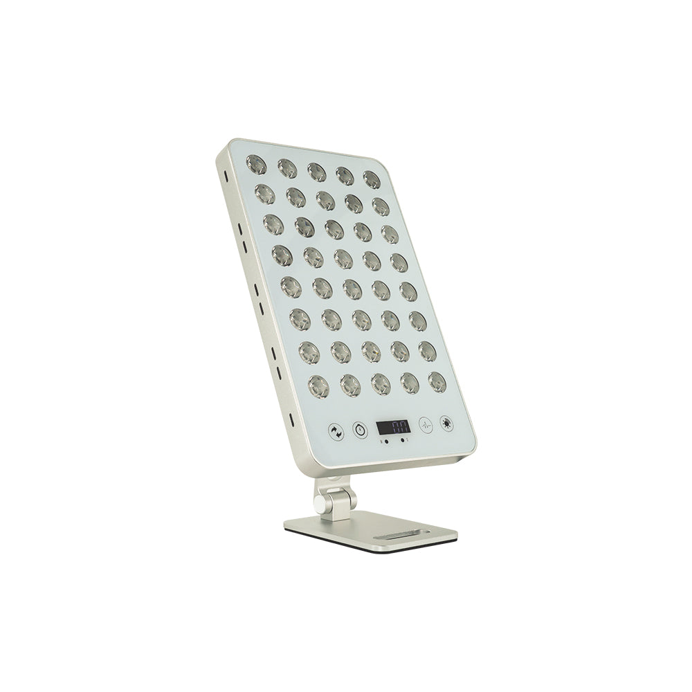 The P40 LED PDT Infrared Red Light Machine is a versatile, high-powered device designed to deliver therapeutic red and near-infrared light for various skin and wellness applications. It features a 1:1 ratio of 660nm and 850nm wavelengths, emitted through 40 high-quality 5W LEDs, providing a balanced spectrum that penetrates the skin to promote collagen production, reduce inflammation, and enhance circulation. With a power output of 200W and an irradiance greater than 140 mW/cm², it ensures effective treatment across a broad surface area. The device's compact design, measuring 265 × 160 × 25 mm and weighing just 1 kg, makes it portable and suitable for both home and professional use. Its 30° beam angle allows for targeted treatment, while the durable construction ensures longevity. The P40 is backed by a 3-year warranty and offers free spare parts, providing peace of mind for long-term use.